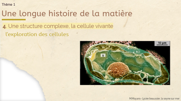 1. les échelles en bio 2. l'organisation des cellules élucidées par l'observation : cellule animale 4. cellule végétale 5. les cellules en 3D 6. les bactéries 7. des exercices 8. BILAN 9. Une origine commune 10. Des exercices