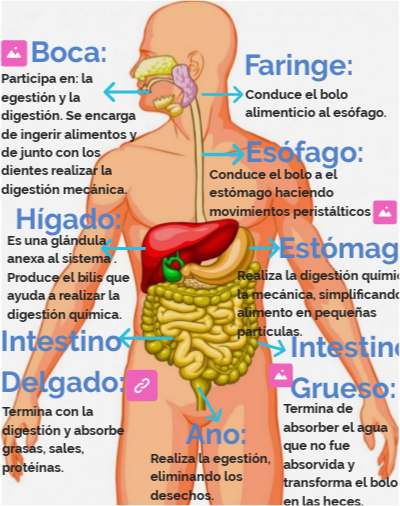 Realiza la digestión química y la mecánica, simplificando el alimento en pequeñas partículas.