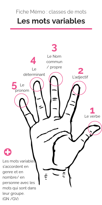 Les mots variables s'accordent en genre et en nombre/ en personne avec les mots qui sont dans leur groupe. (GN /GV)