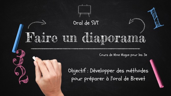 Le diaporama n'est qu'un support à l'exposé oral. On y met que l'essentiel. Le public, même s'il est très intelligent comme tous les membres de votre classe et votre professeur de SVT (bien sûr), n'a pas envie de lire un gros pavé de texte. L'être humain est en général fainéant, et oui pas seulement les ados ... Un texte super intéressant s'il est trop long et en un seul paragraphe ne sera généralement pas lu en entier. Il vaut beaucoup mieux ne mettre que l'essentiel sur le diaporama en résumant en quelques lignes. Ecrivez plutôt quelques lignes en style télégraphique ou remplacez les infos par des images parlantes. Si vous avez beaucoup de choses à dire car vous avez beaucoup travaillé (on n'en doute pas !) vous les direz à l'oral et ça sera encore mieux car vous épaterez tout le monde avec l'étendue de vos connaissances. C'est pourquoi il faut en parallèle de la création du diaporama sur l'ENT, créer aussi un fichier texte où vous collecterez toutes les informations à dire à l'oral. Ce fichier texte sera organisé sur le même plan que le diaporama. Et pas question de lire ce fichier texte à l'oral mais ça on le verra plutôt dans la 3e partie, sauf si vous avez envie d'en lire encore un peu ...