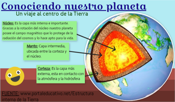 Núcleo: Es la capa más interna e importante. Gracias a la rotación del núcleo nuestro planeta posee el campo magnético que lo protege de la radiación del cosmos y lo hace apto para la vida.