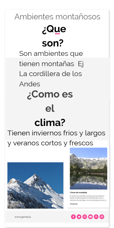 Son ambientes que tienen montañas EjLa cordillera de los Andes