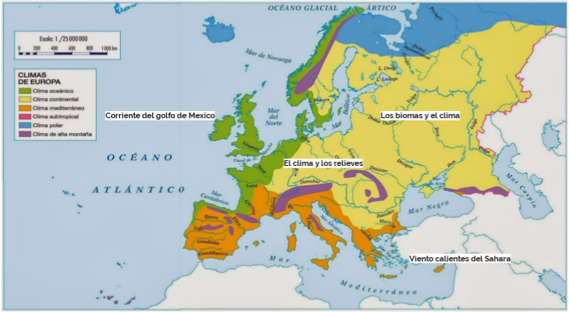 Mapa de Europa (Relieves y Clima)
