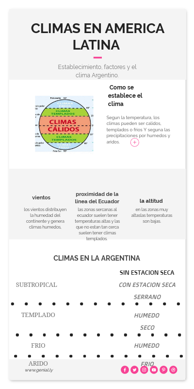 Segun la temperatura, los climas pueden ser calidos, templados o frios Y seguna las precipitaciones por humedos y aridos.