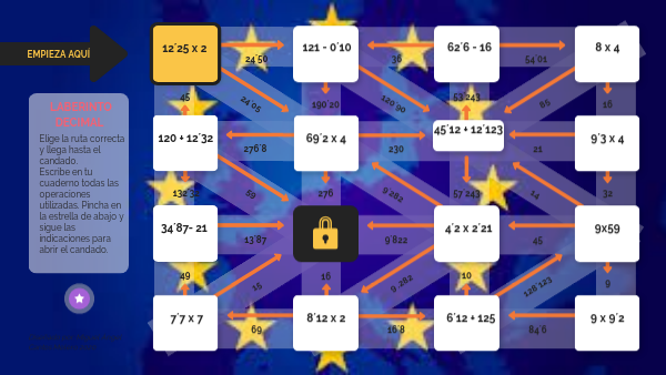 Elige la ruta correcta y llega hasta el candado. Escribe en tu cuaderno todas las operaciones utilizadas. Pincha en la estrella de abajo y sigue las indicaciones para abrir el candado.