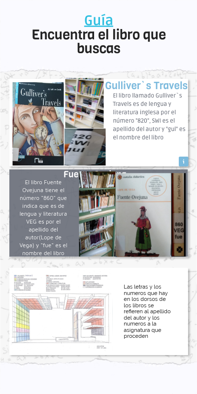El libro llamado Gulliver`s Travels es de lengua y literatura inglesa por el número "820", SWI es el apellido del autor y "gul" es el nombre del libro