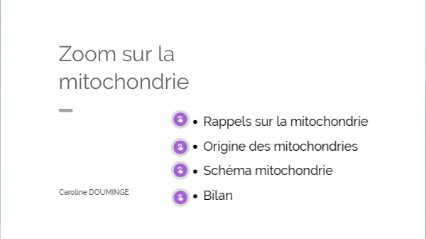 Bilan à recopier La mitochondrie est un organite présent dans le cytoplasme de quasiment toutes les cellules eucaryotes Elle proviendrait de l’endosymbiose d’une cellule procaryote. En forme de bâtonnet, elle est remplie d'un liquide, la matrice mitochondriale, et enveloppée par une double membrane, la membrane mitochondriale externe et la membrane mitochondriale interne, qui délimitent l'espace intermembranaire.