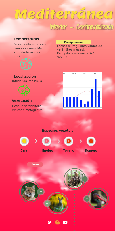 Maior contraste entre o verán e inverno. Maior amplitude térmica, >15ºC
