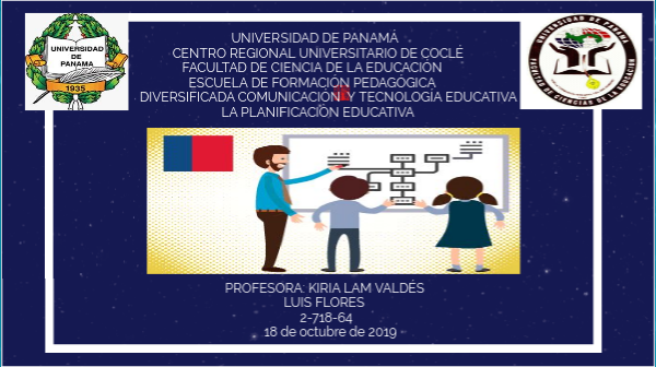 UNIVERSIDAD DE PANAMÁ CENTRO REGIONAL UNIVERSITARIO DE COCLÉ FACULTAD DE CIENCIA DE LA EDUCACIÓN ESCUELA DE FORMACIÓN PEDAGÓGICA DIVERSIFICADA COMUNICACIÓN Y TECNOLOGÍA EDUCATIVA LA PLANIFICACIÒN EDUCATIVA PROFESORA: KIRIA LAM VALDÉS LUIS FLORES 2-718-64 18 de octubre de 2019