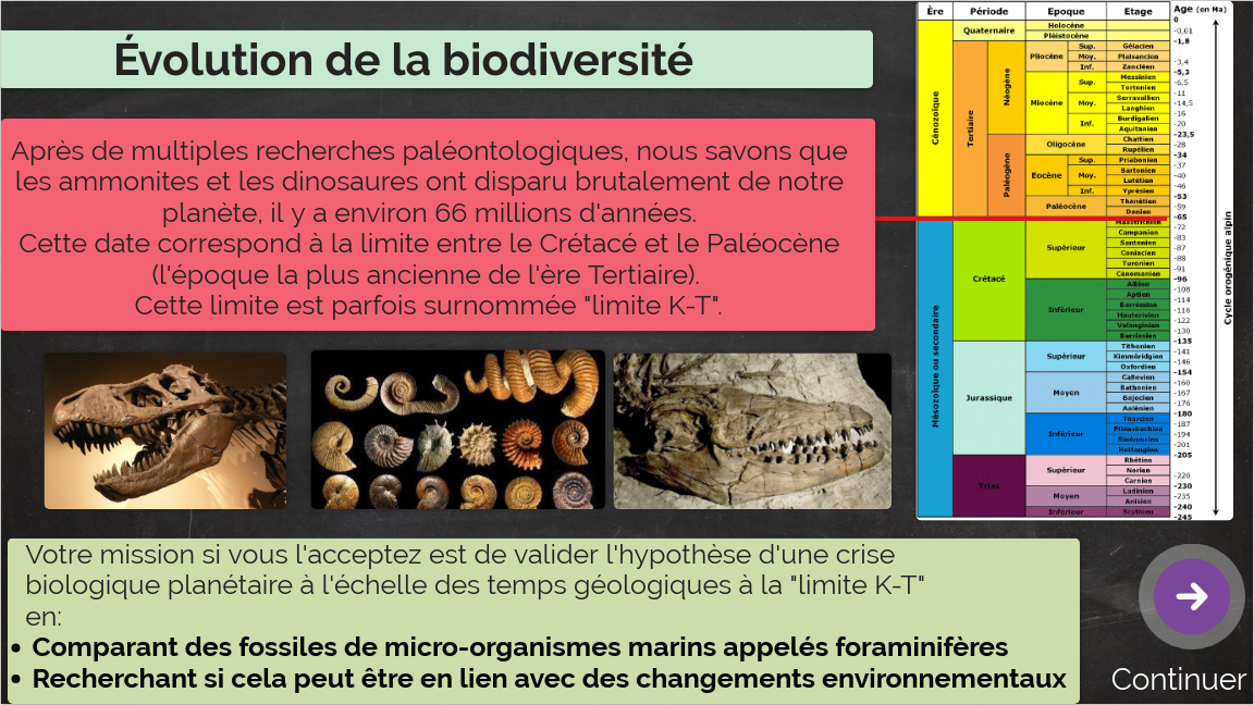 Votre mission si vous l'acceptez est de valider l'hypothèse d'une crise biologique planétaire à l'échelle des temps géologiques à la "limite K-T"en: