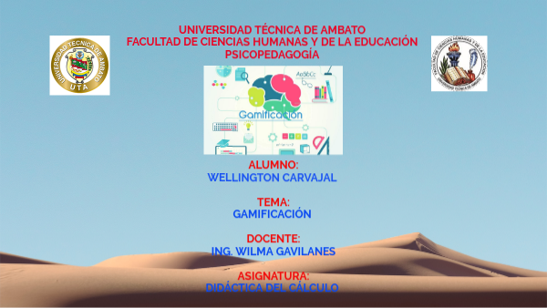 UNIVERSIDAD TÉCNICA DE AMBATO FACULTAD DE CIENCIAS HUMANAS Y DE LA EDUCACIÓN PSICOPEDAGOGÍA ALUMNO: WELLINGTON CARVAJAL TEMA: GAMIFICACIÓN DOCENTE: ING. WILMA GAVILANES ASIGNATURA: DIDÁCTICA DEL CÁLCULO
