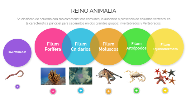 Se clasifican de acuerdo con sus características comunes, la ausencia o presencia de columna vertebral es la característica principal para separarlos en dos grandes grupos: Invertebrados y Vertebrados.