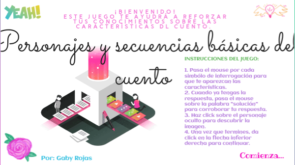 ¡bienvenido!Este juego te ayudrá a reforzar tus conocimientos sobre las características dl cuento.