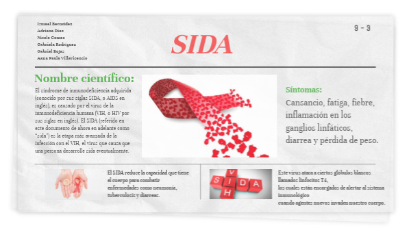 El SIDA reduce la capacidad que tiene el cuerpo para combatir enfermedades como neumonía, tuberculosis y diarreas.