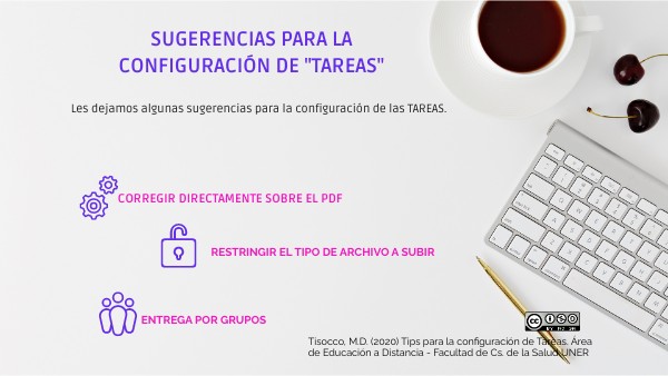 Tisocco, M.D. (2020) Tips para la configuración de Tareas. Área de Educación a Distancia - Facultad de Cs. de la Salud UNER