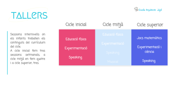Sessions internivells on els infants treballen els continguts del currículum del cicle.A cicle inicial fem tres sessions setmanals, a cicle mitjà en fem quatre i a cicle superior, tres.