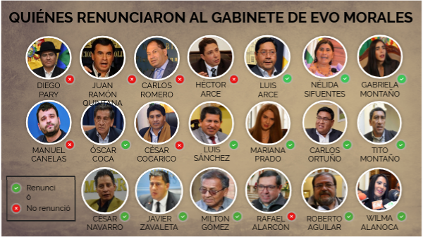QUIÉNES RENUNCIARON AL GABINETE DE EVO MORALES