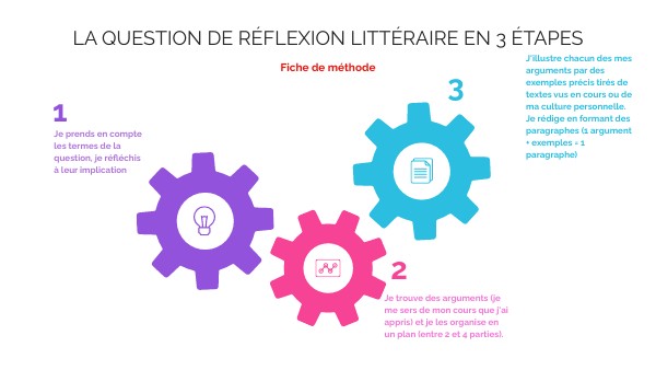 Je trouve des arguments (je me sers de mon cours que j'ai appris) et je les organise en un plan (entre 2 et 4 parties).