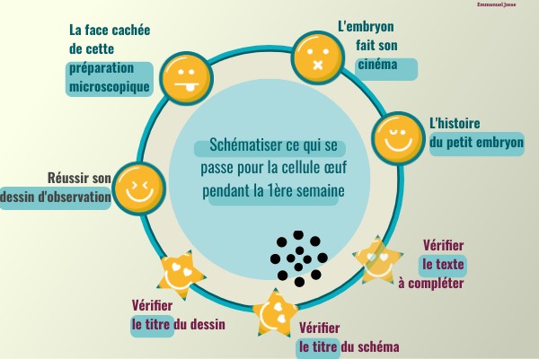 Schématiser ce qui se passe pour la cellule œuf pendant la 1ère semaine