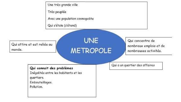 - METROPOLE: Grande ville qui a une forte influence sur les régions environnantes et qui est reliées au monde.