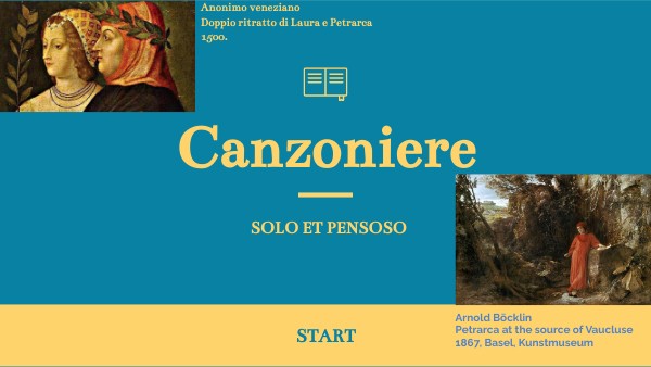 Solo et pensoso i più deserti campi vo mesurando a passi tardi et lenti, et gli occhi porto per fuggire intenti ove vestigio human l’arena stampi. Altro schermo non trovo che mi scampi dal manifesto accorger de le genti, perché negli atti d’alegrezza spenti di fuor si legge com’io dentro avampi: sì ch’io mi credo omai che monti et piagge et fiumi et selve sappian di che tempre sia la mia vita, ch’è celata altrui. Ma pur sì aspre vie né sì selvagge cercar non so ch’Amor non venga sempre ragionando con meco, et io co·llui.