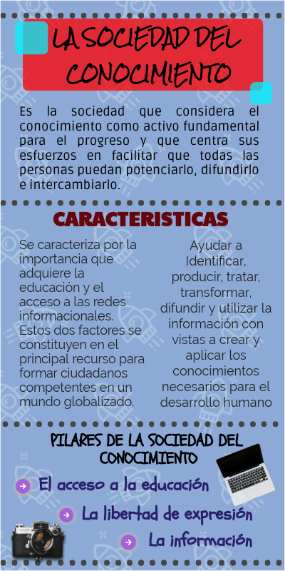 Es la sociedad que considera el conocimiento como activo fundamental para el progreso y que centra sus esfuerzos en facilitar que todas las personas puedan potenciarlo, difundirlo e intercambiarlo.