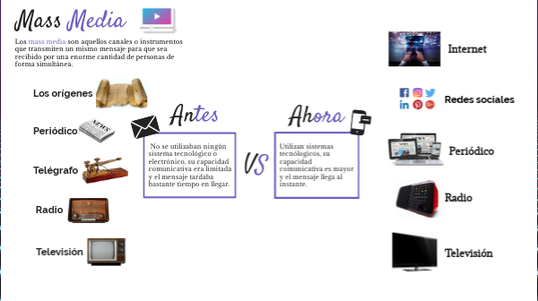 Los mass media son aquellos canales o instrumentos que transmiten un mismo mensaje para que sea recibido por una enorme cantidad de personas de forma simultánea.