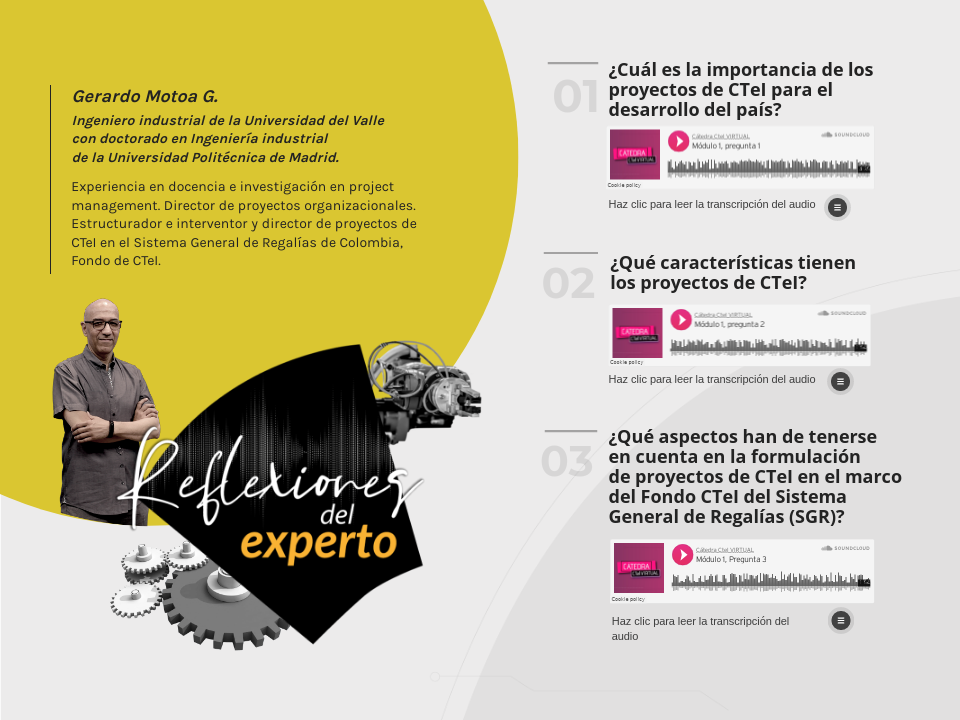 Experiencia en docencia e investigación en project management. Director de proyectos organizacionales. Estructurador e interventor y director de proyectos de CTeI en el Sistema General de Regalías de Colombia, Fondo de CTeI.