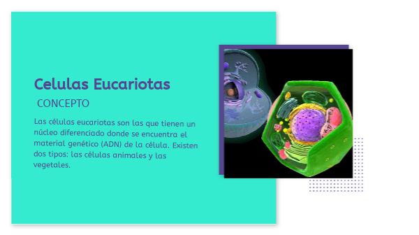 Las células eucariotas son las que tienen un núcleo diferenciado donde se encuentra el material genético (ADN) de la célula. Existen dos tipos: las células animales y las vegetales.