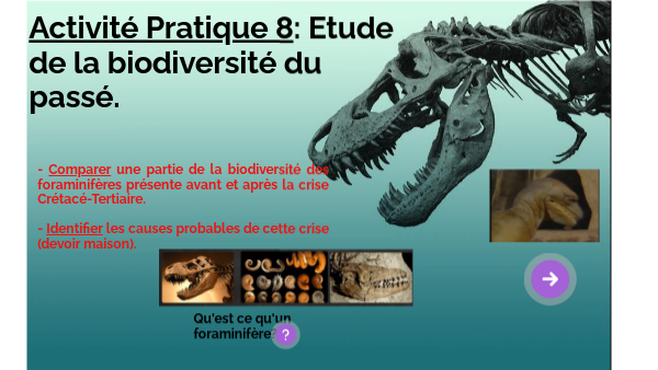 - Comparer une partie de la biodiversité des foraminifères présente avant et après la crise Crétacé-Tertiaire. - Identifier les causes probables de cette crise (devoir maison).