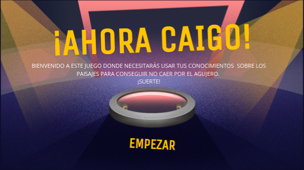 BIENVENIDO A ESTE JUEGO DONDE NECESITARÁS USAR TUS CONOCIMIENTOS SOBRE LOS PAISAJES PARA CONSEGUIR NO CAER POR EL AGUJERO. ¡SUERTE!