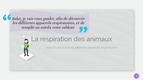Salut, je vais vous guider, afin de découvrir les différents appareils respiratoires, et de remplir au mieux votre tableau