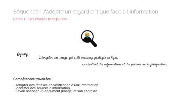 Compétences travaillées :- Adopter des réflexes de vérification d'une information - Identifier des sources d’information - Savoir analyser un document (image) et son contexte