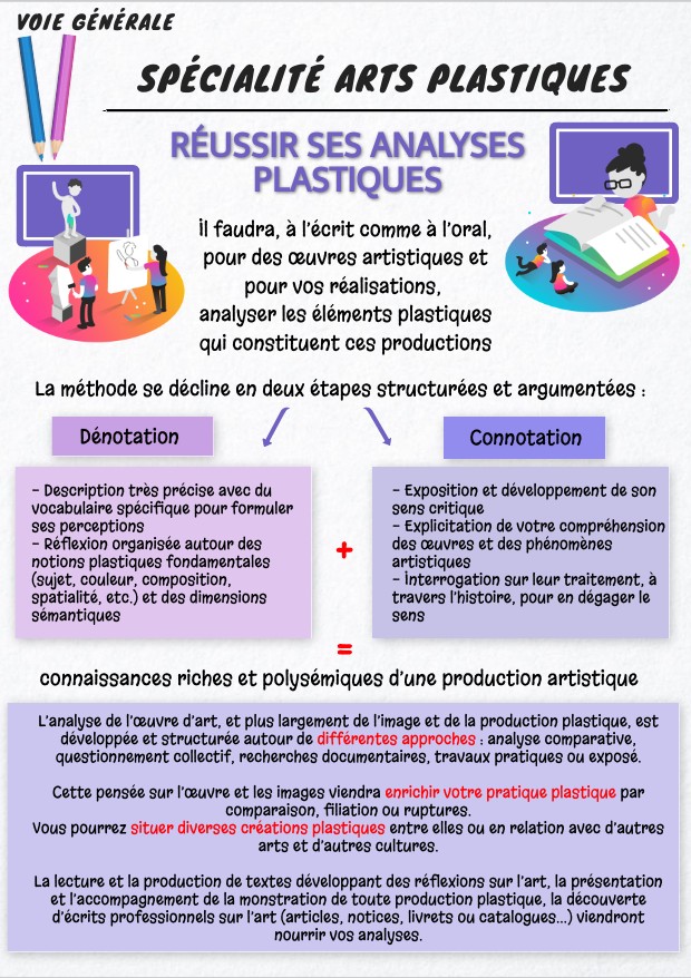 Il faudra, à l’écrit comme à l’oral, pour des œuvres artistiques et pour vos réalisations, analyser les éléments plastiques qui constituent ces productions