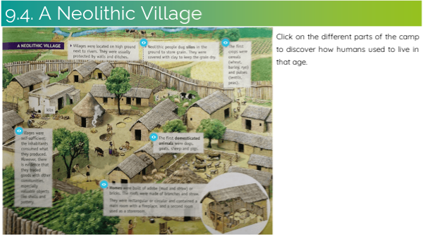 Click on the different parts of the camp to discover how humans used to live in that age.