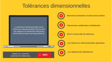 La tolérance dimensionnelle est la dimension allouée (réelle) d'une pièce par rapport à la dimension théorique (nominale) puisqu'il est impossible de