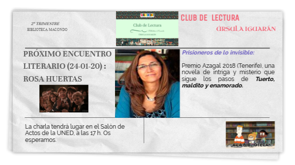 PRÓXIMO ENCUENTRO LITERARIO (24-01-20) : ROSA HUERTAS