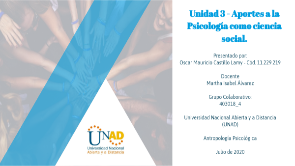 Presentado por: Oscar Mauricio Castillo Lamy - Cód. 11.229.219 Docente Martha Isabel Álvarez Grupo Colaborativo: 403018_4 Universidad Nacional Abierta y a Distancia (UNAD) Antropología Psicológica Julio de 2020