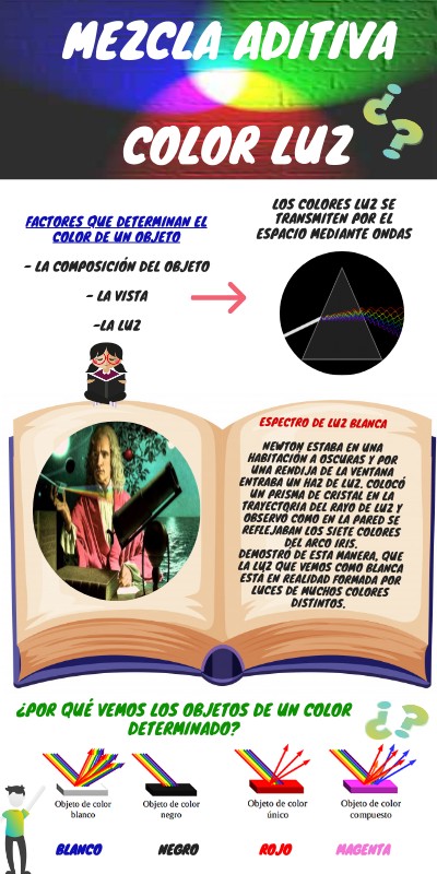 Espectro de luz blanca Newton estaba en una habitación a oscuras y por una rendija de la ventana entraba un haz de luz. Colocó un prisma de cristal en la trayectoria del rayo de luz y observó como en la pared se reflejaban los siete colores del arco iris. Demostró de esta manera, que la luz que vemos como blanca está en realidad formada por luces de muchos colores distintos.