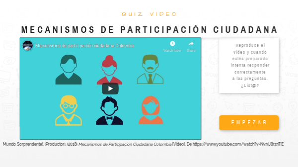 Mundo Sorprendente!. (Productor). (2018) Mecanismos de Participación Ciudadana Colombia [Vídeo]. De https://www.youtube.com/watch?v=NvnU8rznTiE