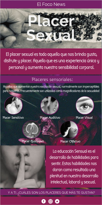 El placer sexual es todo aquello que nos brinda gusto, disfrute y placer. Aquello que es una experiencia única y personal y aumenta nuestra sensibilidad corporal.