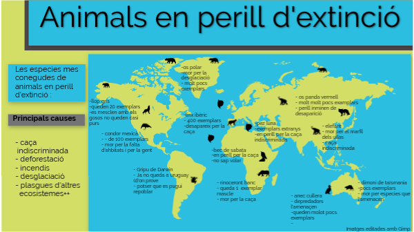 - caça indiscriminada - deforestació - incendis - desglaciació - plasgues d'altres ecosistemes++