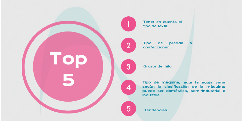 Tipo de máquina, aquí la aguja varía según la clasificación de la máquina; puede ser doméstica, semi-industrial o industrial.