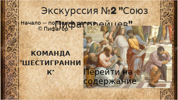 Экскурссия №2 "Союз Пифагорейцев"