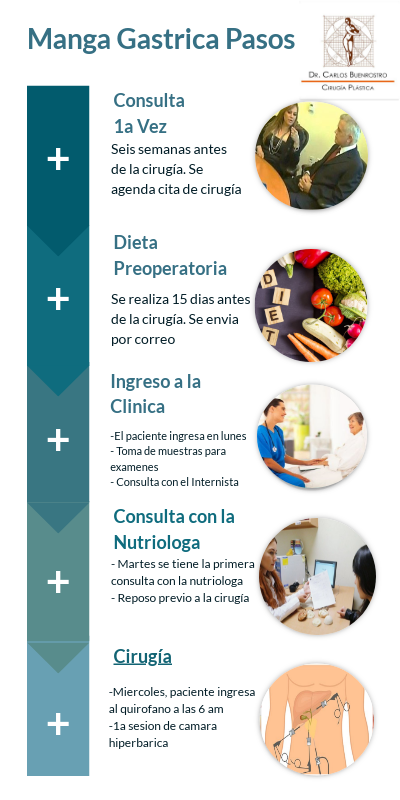 Detalle de pasos a segir para la cirugia de Manga Gástrica