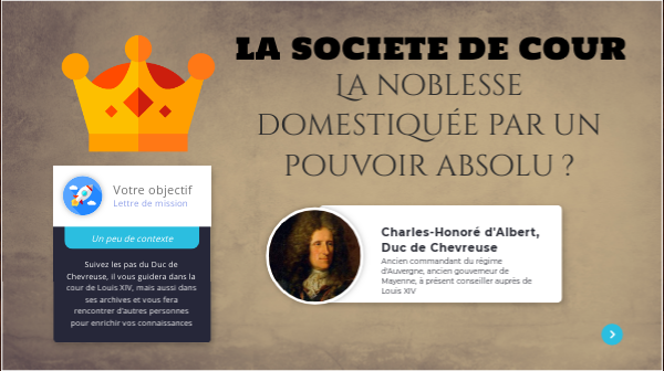 Suivez les pas du Duc de Chevreuse, il vous guidera dans la cour de Louis XIV, mais aussi dans ses archives et vous fera rencontrer d'autres personnes pour enrichir vos connaissances