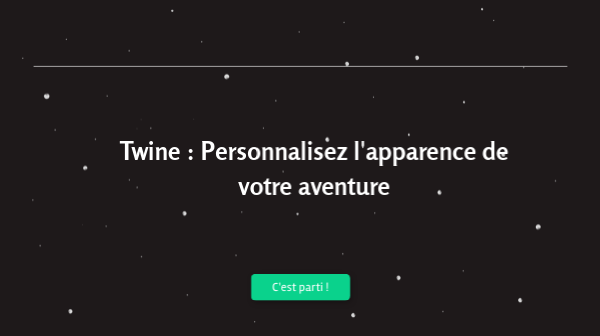 Twine est un outil plein de possibilités, que nous n'aurons pas le temps de voir ! Pour aller plus loin si tu le souhaites dans un futur plus ou moins proche et voir les possibilités que t'offrent les formats d'histoire, le CSS, les variables, il existe plusieurs sites qui proposent des explications et des guides : Pour des articles et des tutoriels en français Pour un guide complet, le Wiki de Twine 2 (en anglais)