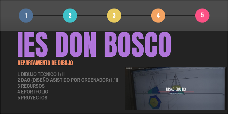 1 DIBUJO TÉCNICO I / II 2 DAO (DISEÑO ASISTIDO POR ORDENADOR) I / II 3 RECURSOS 4 EPORTFOLIO 5 PROYECTOS