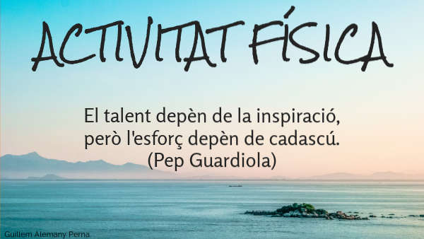 Atenent a la complexitat del moment, i sense oblidar la importància de realitzar una mica d'activitat física diària, realitzaré una sèrie de propostes per anar fent dia a dia, tenint en compte que es recomana fer uns 60 minuts d'esport al dia.