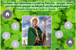 Kochani, dziś katecheza o świętym Patryku - postaci, którą już mogliście poznać na lekcjach języka angielskiego.Śmiało klikajcie po kolei w ikonki :)